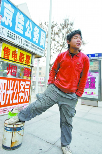 记者想帮他找个工作,问:“给你介绍去当保安,月工资1500元,发衣服还管中午饭,你愿干不愿?”