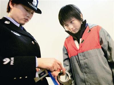 进入法庭前,警察给21岁的被告人摘下手铐。