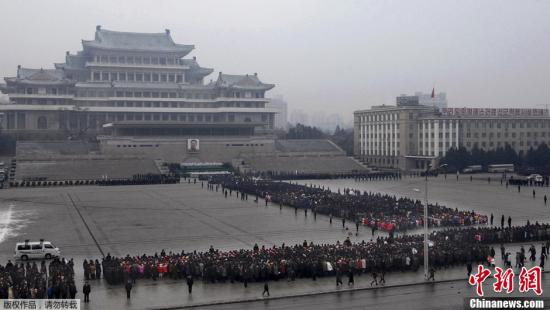 12月21日,朝鲜首都平壤下起了大雪,但仍有大批民众冒雪前往各哀悼场所进行哀悼活动,图为朝鲜中央通讯社22日发布的平壤金日成广场哀悼现场照片。