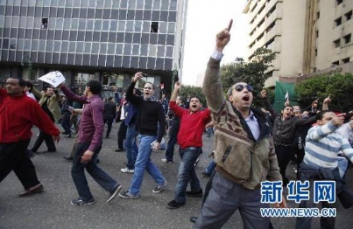 1月25日,抗议者在埃及首都开罗街头游行示威。 新华社/路透