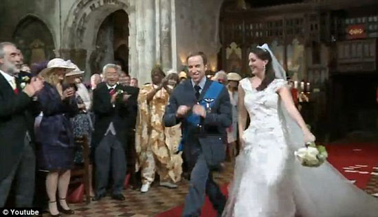 德国电信公司(T-mobile)发布的一则广告视频成为在英国点击率第二高的视频,上面许多与英国王室成员相貌相似的人,模仿剑桥公爵夫妇婚礼上的舞蹈,全球点击率为2400万次。(视频截图)