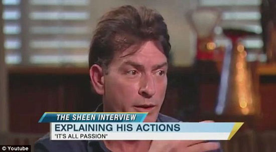 在英国,第三受关注的视频是美国影星查理·辛(Charlie Sheen)接受访问的视频,他曾出演情景喜剧《好汉两个半》(Two and a Half Men)。该视频全球点击率为3700万次。(视频截图)