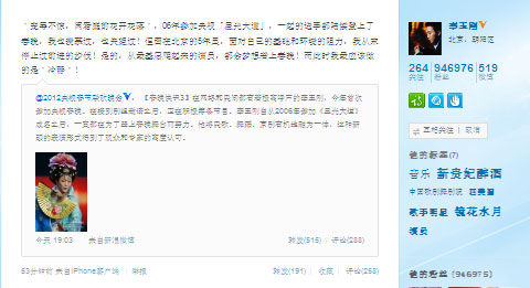 央视春晚官方微博发布消息称李玉刚在接到剧组邀请之后,正在积极筹备节目。该消息一经公布后,媒体便纷纷打电话求证,李玉刚通过微博表示的确接到了龙年春晚的邀约,并恳请记者们不要再打电话了,谢谢大家关心。同时他还不忘调侃记者神通广大,称“对记者朋友也表示无比的佩服,这是我新换的号呀!”
