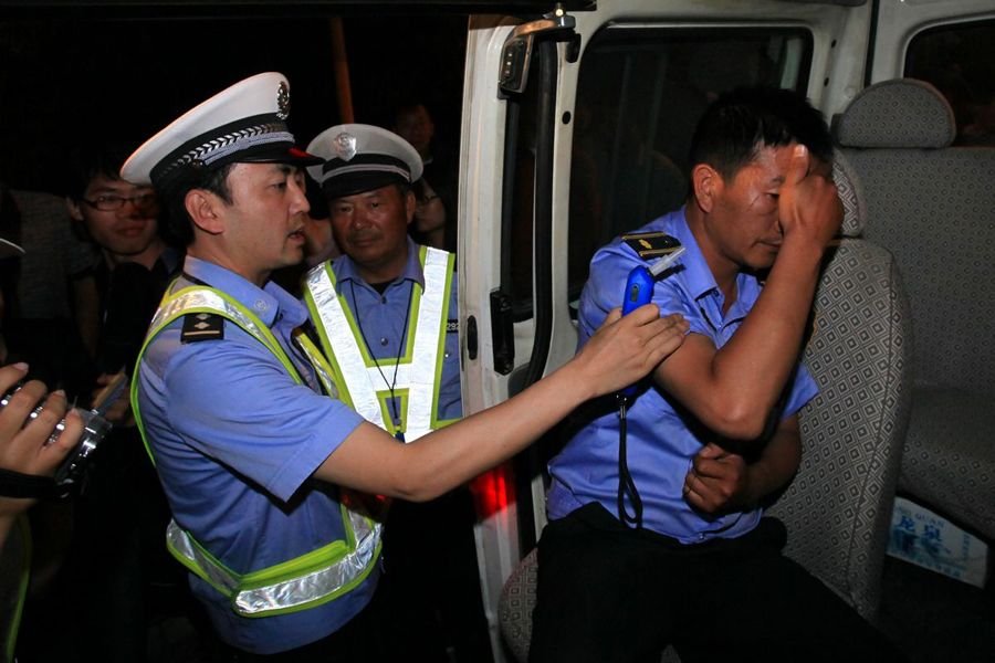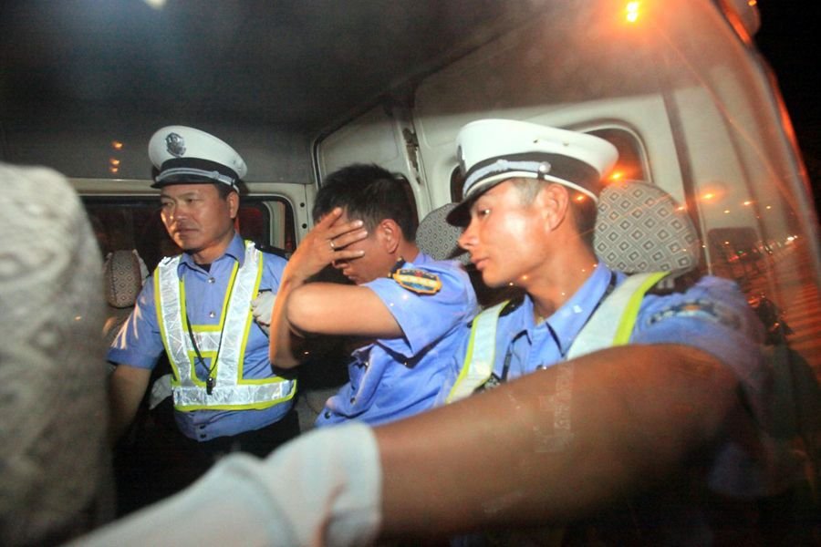 面对交警询问,醉驾驾驶员承认,自己是隶属于度假区的城管人员。面对记者镜头,醉驾驾驶员用报纸遮起了脸,不愿面对。快速完成现场取证程序和询问,驾驶员被要求在多名交警的陪同下,前往医院进行抽血检测。