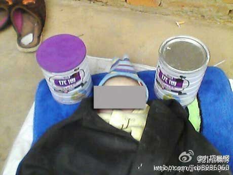 当天上午9时30分许,在周溪镇新街,一对年轻的父母将不到五个月的儿子尸体摆放在一家名为“家家福超市”的门前,身边摆放着两罐圣元优博奶粉。这一举动引起了过往人群的围观。据受害家属江先生称,此前两婴幼儿一直食用的是该款奶粉,未曾出现问题,但是月初购买了该品牌“20111112B11”批次的奶粉后仅食用两天,两名小孩就出现腹泻,甚至抽搐,家属质疑该批次奶粉存在质量问题。