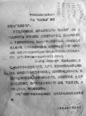 1989年7月,中国农业银行青县支行面对储户推出了“生活基金”储蓄业务,称存入的钱可高息保值。“我当时存了2000元,银行说20年到期后能变成9万多元。”河北青县储户骆先生说。然而,当2009年这笔钱到期后,银行方面却以利息太高、存期太长,不符合央行规定为由,拒不兑现。