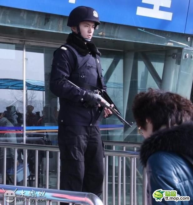 各地持枪抢劫事件频发,出于安全考虑,在火车站门口安排这么一个正气凛然、360度无死角的帅哥武警,人民的生命财产安全是大大的有保障。女同胞们还可以享有额外的福利,正大光明地打量,也不用担心警察叔叔有意见。