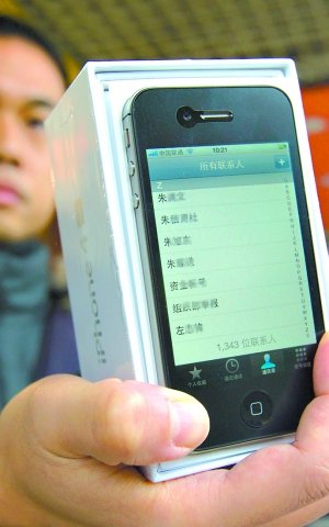 13日,iPhone4S在全国正式发售,严先生辛辛苦苦地起了个大早,排了两个多小时的队,在联通东山口营业厅买到了该处售出的第一部iPhone4S,但让他没有想到的是,这部价值6000元的刚拆开包装纸的新手机里,竟然存有1343个电话号码。
