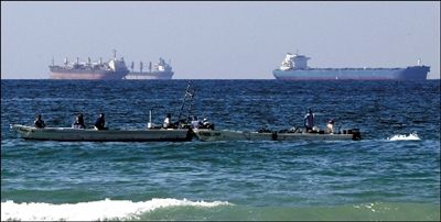 几艘油轮从霍尔木兹海峡附近经过。伊朗方面29日称,“不久”将停止向某些欧洲国家供油。图/人民图片