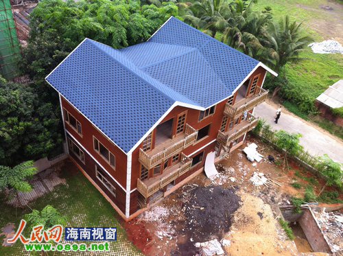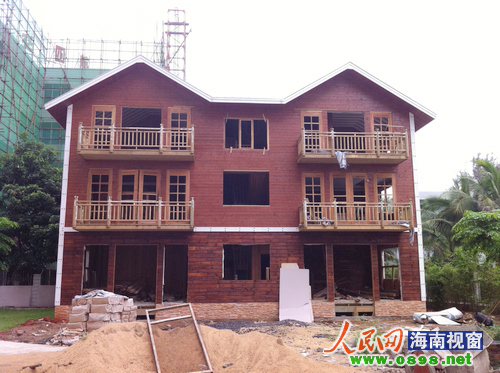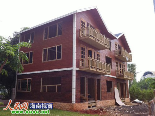 5月23日下午,在知情人士的指引下,记者来到海口市金贸西路鑫汇大厦,在该大厦背后的空地上,一幢欧式风情的小木楼赫然展现在记者面前。记者看到,该楼共计3层,属纯木结构,木屋已经基本完工,部分建筑材料还堆积在木楼门口,但没有见到有工人施工。