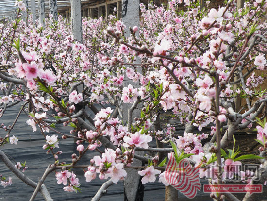 油桃大棚内盛开的油桃花,春意浓浓。