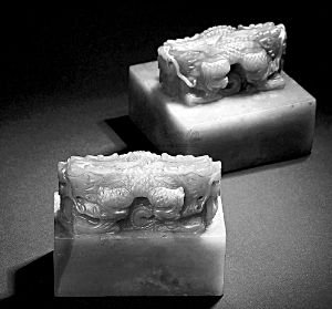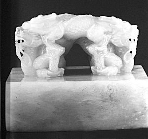圆明园绮春园玉玺:此玉玺为两方,分别为“凤麟洲”和“水净沙明”,为三方组玺中的两方,另一方“麟游凤舞”玺至今还未发现。此组玺在2009年11月11日瀚海十五周年庆典拍卖会被拍卖。