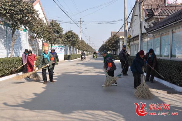 丰岭村卫生保洁队正清扫大街