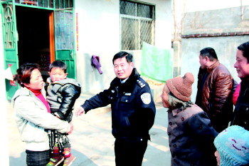 民警把走失的孩子送回家中。