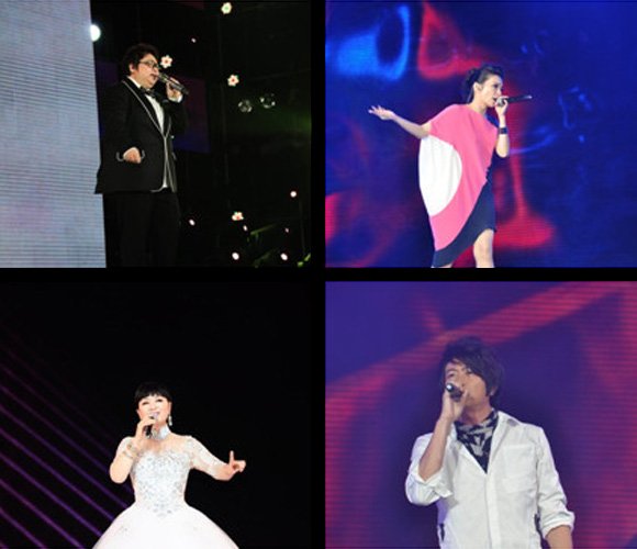 图为演唱会主持人朱军和周涛。(来源:微博)