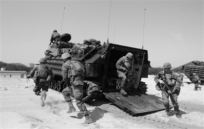 3月29日,韩国庆北浦项市,美韩海军陆战队举行联合军演。