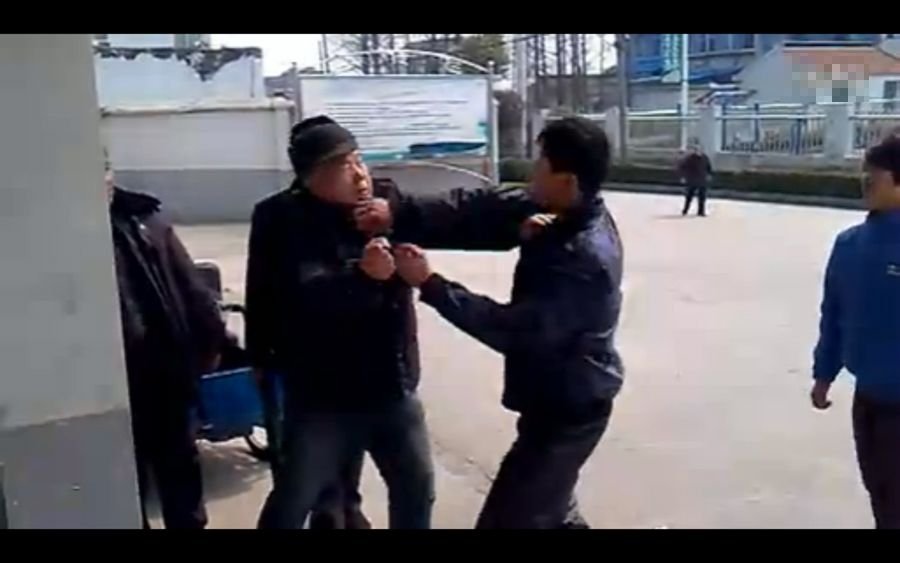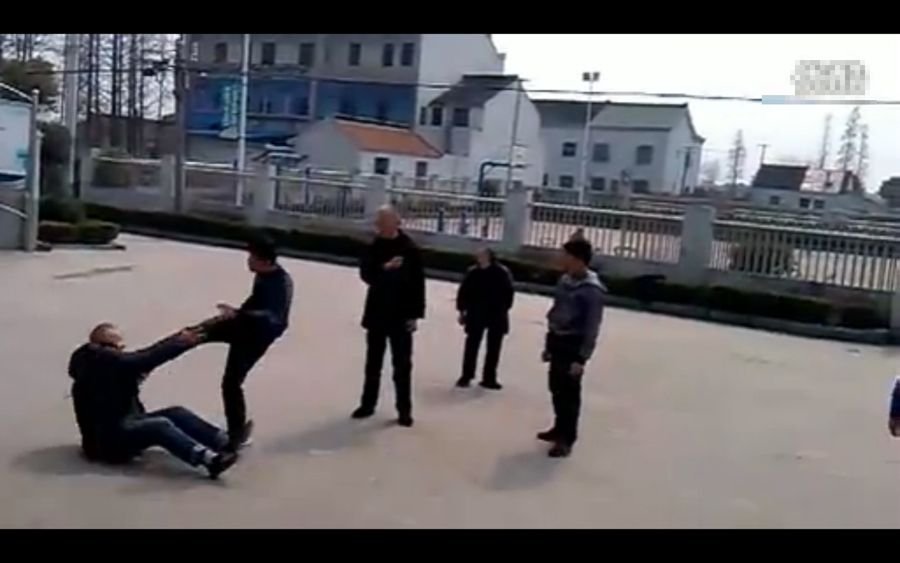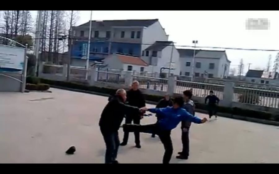 紧接着,黑衣男孩又走上前来,嘴里一边骂着脏话一边打老人。此时,站在一边的瘦老人不知道又是哪里招惹了蓝衣男孩,再次招来蓝衣男孩的拳打脚踢。