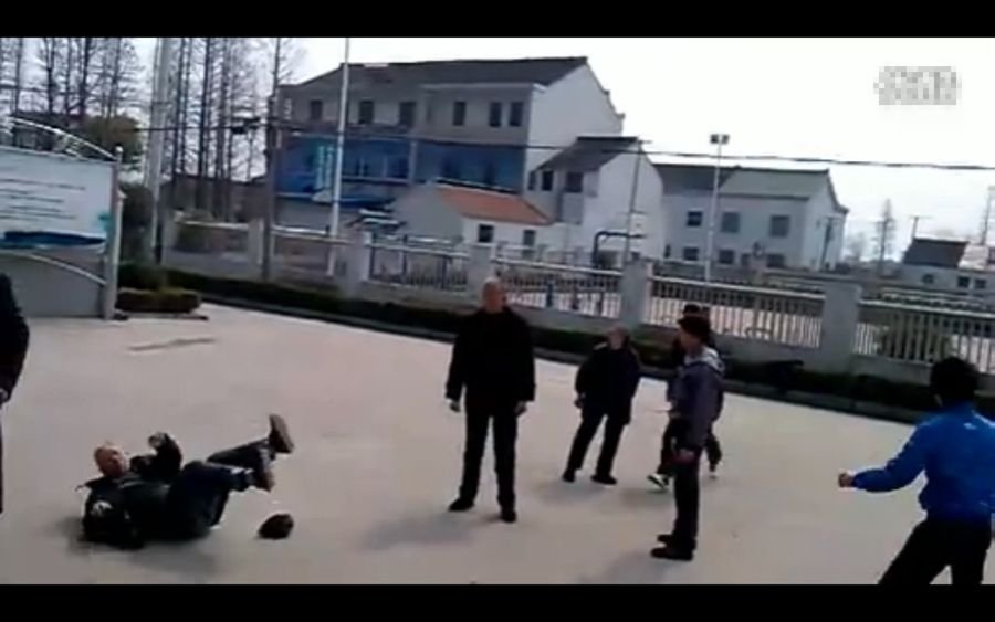 之后,一位黑衣少年站到了胖老人面前,两人扭打在一起,黑衣少年直接将胖老人摔在地上。这时,另外一位白发老人上来拉架,却被蓝衣少年殴打。