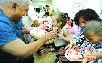 5月31日,在济南中德骨科医院国际骨矫形中心,社会爱心人士一起为在医院就诊的中外儿童送去礼物。 本报记者 王媛 摄