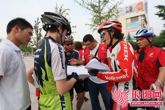 甘肃环保志愿者康逢云,骑单车历时七年,已穿越780个省市县区,总行程近10万公里。6月1日上午途径郯城时,受到当地群众的欢迎和县环保局相关负责人的热情接待。当日下午,康逢云会同该县义工联合会及自行车运动协会人员,在县城街道向过往市民宣传环保知识,号召公众“推进污染减排、践行绿色生活”,共发放宣传单3000张。