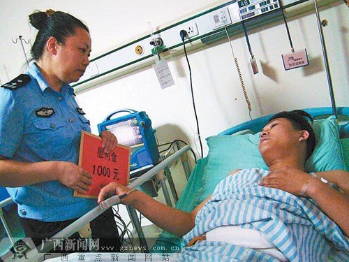 当天下午4时许,青秀公安分局副政委黄冬云、向阳派出所所长李志明等人来到医院看望陈伸慧,并送上1000元慰问金。黄冬云赞扬了他的行为:“你做得对,我们大家都应该向你学习。”