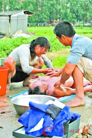菜农遭遇不幸,妻子痛哭流涕。记者杨勤 摄