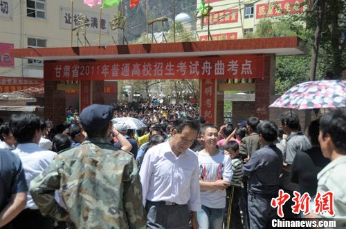 甘肃舟曲88特大山洪泥石流灾害过去整整10个月后,6月7日至8日,赴外就读归来的868名舟曲学子步入考场,参加高考。冯晓宏摄