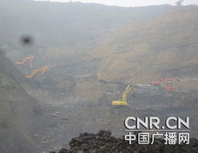 挖掘机不断地从“垃圾填埋场”的煤层挖出煤炭(陈振玺摄)