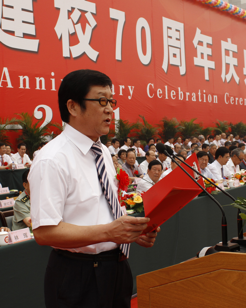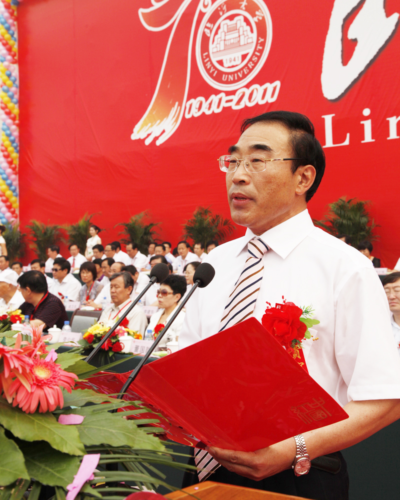 黄胜在讲话中指出,临沂大学是山东党组织1941年在沂蒙革命老区建立的红色大学之一。70年来,学校认真贯彻党的教育方针,深深扎根沂蒙沃土,用沂蒙精神办学育人,传承弘扬红色文化,薪火相传,青蓝相继,不断成长壮大,谱写了一曲求实创新、人才辈出的辉煌篇章,为沂蒙老区、为山东省、为国家经济建设和社会发展做出了重要贡献。去年更名为临沂大学后,学校进一步明确目标,把握机遇,更新理念,创新发展,更加彰显出红色大学的精神品质,继续保持了蓬勃向上的良好发展势头,开启了向综合性大学发展的新征程。当前,我省正处在全面建设小康社会、实现富民强省新跨越的关键时期,高等教育肩负着新的使命和重任,承载着新的光荣和梦想。希望临沂大学以70年校庆为新的起点,坚持以科学发展观为指导,认真贯彻胡总书记重要讲话精神,全面落实国家和省教育规划纲要,借鉴国内外高水平大学的发展经验,进一步突出自身优势,强化办学特色,提高教育质量,加快内涵发展,不断提高人才培养质量和服务经济社会发展能力,力争多出人才、多出成果,早日把学校建设成为高质量综合性品牌大学,为建设教育和人力资源强省、加快经济文化强省建设做出新的更大贡献!希望省有关部门、临沂市及社会各界,一如既往地关心支持学校建设和发展,为其创造良好的环境和条件,提供更多支持和帮助。衷心祝愿临沂大学在新的征途上,谱写新的篇章,创造新的辉煌,迎来更加美好灿烂的明天!