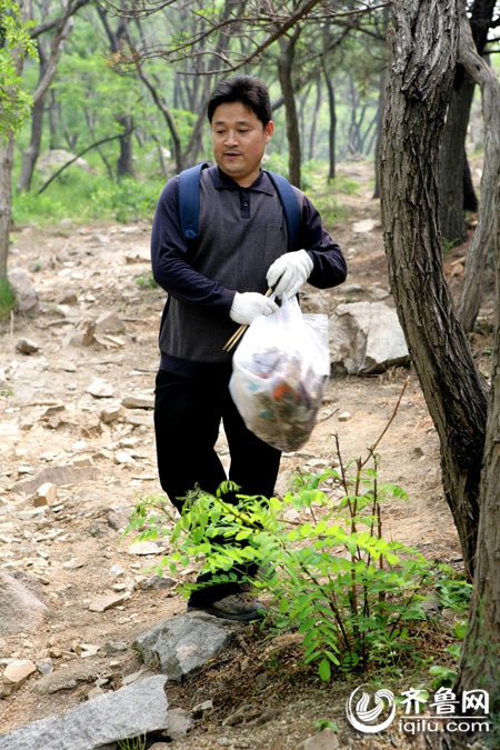 身穿上千元冲锋衣肩背名牌登山包随身携带一双筷子,遇到塑料袋矿泉水瓶等垃圾就夹起来装进塑料袋,每次下山都会带走四五袋垃圾,问他却始终不肯透露姓名……近来,不少网友和读者致电本报反映说,在浮山上有个7年如一日捡垃圾的男子,感动了不少人,该男子还因此被大家称为 “浮山环保哥”。在网络上还有网友爆料称该男子为生活殷实的白领,有的人称其为“平凡环保英雄”,还有人指其为“垃圾癖”。为此,记者日前通过网络和实地采访,了解到了这位执着可敬的 “环保哥”的一些事迹。