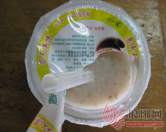 14日上午,琅琊网接到新闻热线,王女士称今早于惠民早餐餐点购买了一杯咸粥,带到单位后发现咸粥是酸的。