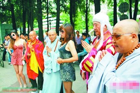 本报讯 据《东莞时报》报道,13日,微博上出现一则东莞长安医院门口“和尚美女道士尼姑齐上阵为植物人祈福”的消息,同时附有图片。这条微博立即吸引了网友的眼球。