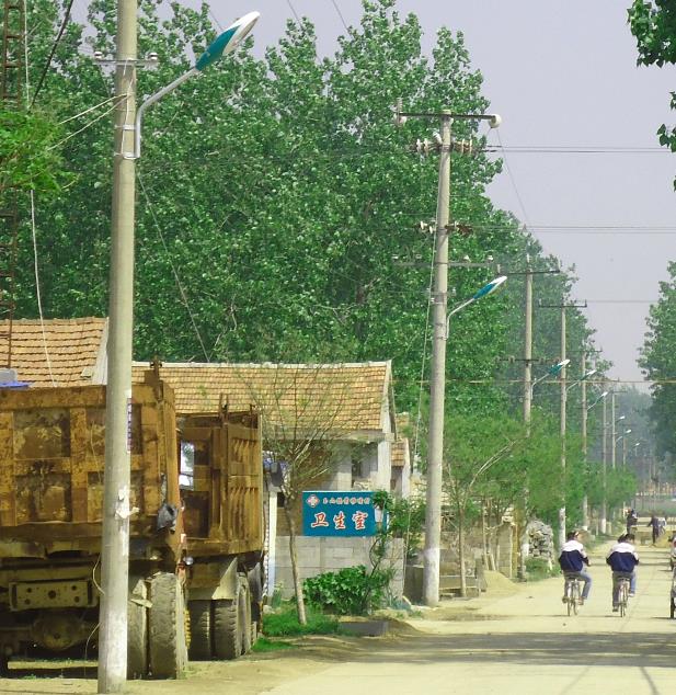 崭新的路灯站立在前穆疃村道路旁
