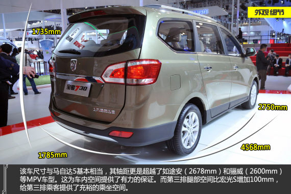 宝骏730是上汽通用五菱为中国大家庭量身定制的专属7座家用车,集7座超大空间、五星安全、驾乘皆宜、超值配置等特点于一身。这款上汽通用五菱首次采用前置前驱布局的7座车,相比五菱宏光S,是一款完全家用化的产品,同时也完全适合中国百姓的生活使用。