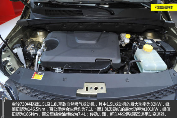 动力方面,宝骏730将搭载1.5L发动机和一台全新的1.8L发动机。传动系统方面,先期上市的宝骏730将仅配备手动变速箱,随后宝骏730还将推出配备自动变速箱的车型。