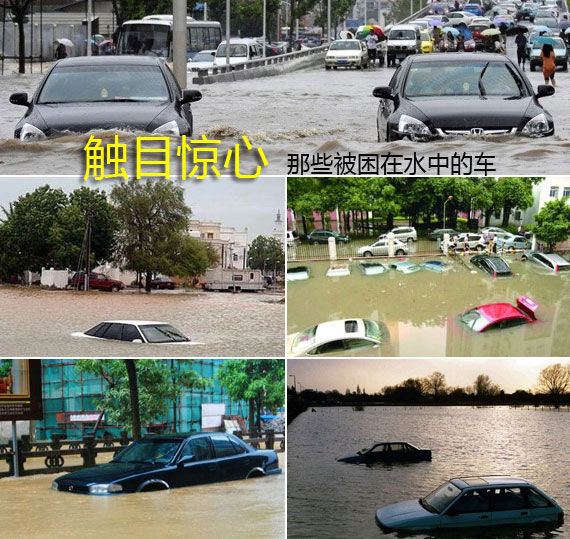 触目惊心,看看那些被困在雨水中的车