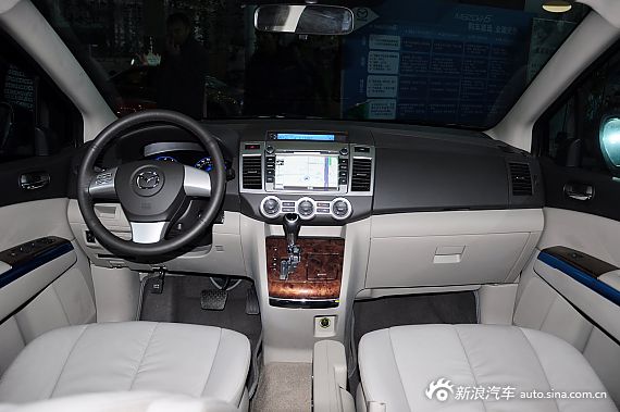 内饰:马自达8采用浅色设计,整体感觉高贵大气,家居感浓郁,仪表盘设计上,黑色底面白色刻度的圆形设计整体上比较普通,但字迹很清晰,易于驾驶者阅读,中控台设计简洁明快,对称式的布局使其操作简洁容易上手。