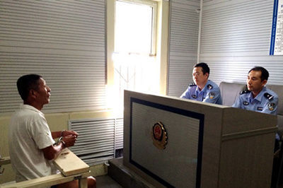民警对犯罪嫌疑人进行讯问