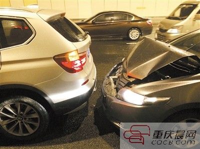18日,冯先生与往常一样,于傍晚6点过在育才中学接完放学的女儿后返回江北。由于正值晚高峰,冯先生被堵在了嘉华隧道口内的最左侧车道。没想到踩了刹车没多久,冯先生就从后视镜里看到身后一辆轿车径直朝自己的X3尾部撞来。“嘭!”追尾发出了巨大声响,也着实让车上的冯先生和女儿吓了一大跳。冯先生下车后发现,冲过来的本田轿车前引擎盖已拱起变形,自己的车看上去倒没啥大问题。