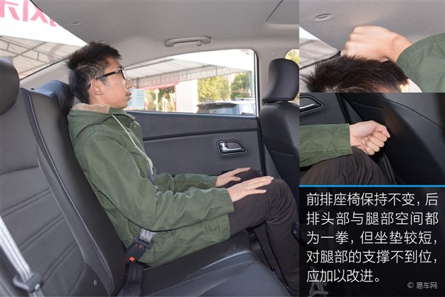 内饰方面主要变化在于换装了全新设计的方向盘,增加了内饰的高级感,空调面板也变得不再廉价。空间表现仅仅够用,下图模特身高为1.80米。