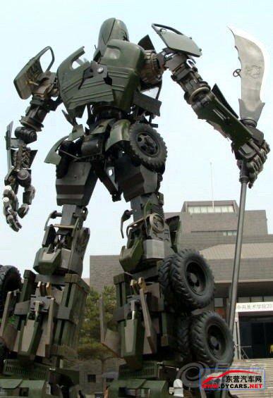 最近在中央美术学院毕业展览上,一件由中国老解放汽车改造而成,以中国关公形象为蓝本的艺术作品备受瞩目。名为《解·放》的艺术品形似电影中的变形金刚,因此有“关公版变形金刚”之称,高9.7米,重约4吨,耗资近30万元,在展览上甚受瞩目。