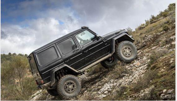 动力通过改进过的7前速7G-tronic自动变速箱传递给四驱系统,源自G500的独立分动箱提供高低速档,前中后三个电控机械式差速器锁当然也是标准配置。换用双簧双减震应付恶劣路面,减震备有舒适和运动两种模式,并且仅需15毫秒就能完成模式切换。