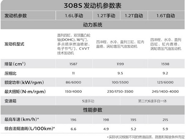小贴士:308S预售11.5万起;将4月15日正式上市;推出6款车型;搭载1.6L、1.2THP和1.6THP三款动力