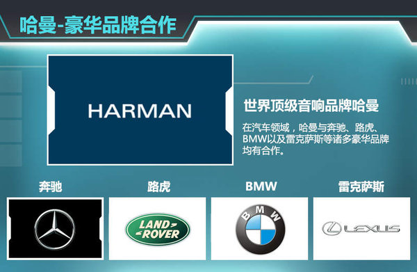 据了解,哈曼旗下共计拥有JBL、AKG、harman/kardon、Infinity、Mark Levinson等15个知名音响品牌,在全球的音响研发和制造领域处于领导地位。单是在汽车领域,哈曼国际便已与奔驰、宝马、奥迪、雷克萨斯、保时捷、路虎以及捷豹等诸多车企合作。至于吉利博瑞所使用的Infinity,则属于哈曼的中高端品牌。