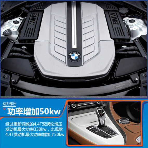全新6系车型另一大变化,便是动力性能进一步提升。其中搭载4.4T双涡轮增压发动机,采用单涡管双涡轮的形式,最大功率为330kW/5500-6000rpm,峰值扭矩为650Nm/2000-4500rpm。相比现款4.4T发动机最大功率和峰值扭矩,分别增加30kW和50Nm,实现动力的全面优化。传动方面,新款6系全系车型(不包括M6)均为8速自动变速箱。