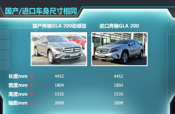 奔驰GLA 200 国产动感型/进口车型 尺寸对比