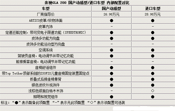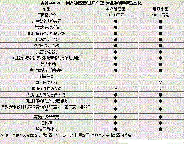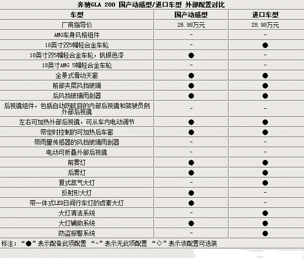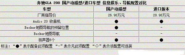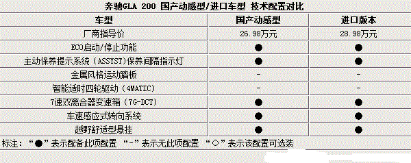 奔驰GLA 200 国产动感型/进口车型 配置对比