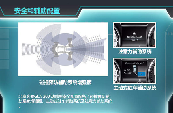国产GLA基于MFA全新前驱车平台打造,由北京奔驰NGCC(New Generation Compact Car)工厂生产,在车身尺寸上国产GLA 200动感型与进口GLA 200完全相同。这款紧凑型的SUV从轴距数据来看内部空间还是比较宽裕的,而由尺寸数据可知该车可在城市里灵活穿梭,通勤能力很不错。