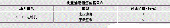 近年来,比亚迪在新能源汽车领域取得了重大进步,如今企业又瞄准了火热的SUV市场。日前,网通社从比亚迪官方获悉,其旗下首款插电式混合动力SUV“唐”将于今日在2015年深港澳车展上正式上市,新车分为普通版和极速版,预售价格区间为30-60万元。值得一提的是,比亚迪唐的百公里加速时间仅为4.9秒。
