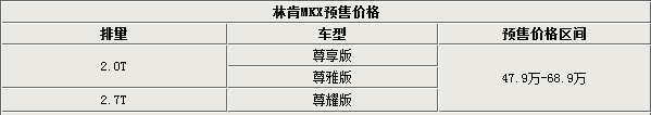 林肯自去年在华“复出”以来一口气推出了两款产品。林肯中国区总裁庞立博(Robert Parker)表示:“豪华车在中国是增长最快的市场,变化非常快。今年中国的豪华车有可能赶超美国成为全球最大的豪华车市场。因为其发展迅速,对于林肯来说,中国的豪华车市场非常重要”。近日,网通社从林肯内部人士处获悉:林肯在华引入的第三款车是一款中大型SUV——MKX,新车预计将于9月上市。网通社走访林肯北京4S店了解到,目前该车已经可以接受预定。